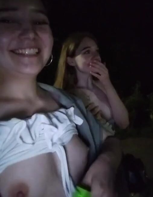 Girls livestreaming in a public park show 2