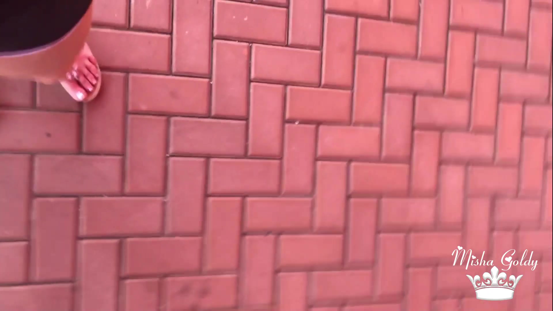 Mistress Misha Goldy POV Walking in shiny sandals and toe wig