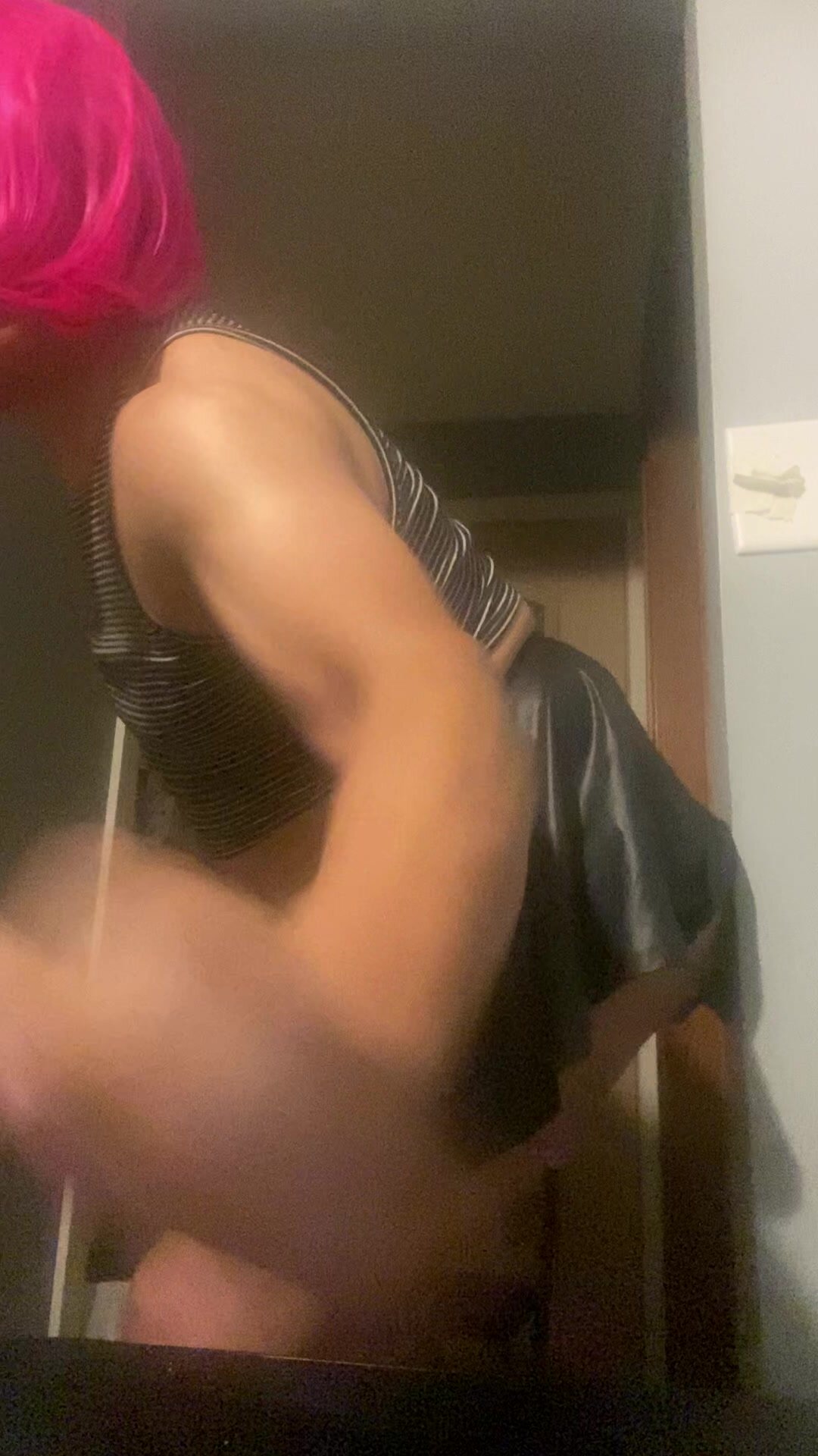 Pink haired Latina transexual fucking herself w/ poppers